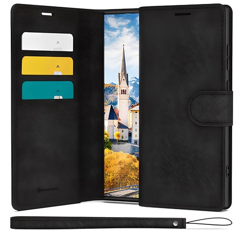 신지모루의 마그네틱 사피아노 가죽 다이어리 지갑 케이스는 세련된 디자인과 뛰어난 내구성으로 휴대폰을 보호하고 스타일링까지 도와줍니다. 스트랩이 포함된 세트로 손쉽게 휴대할 수 있습니다.